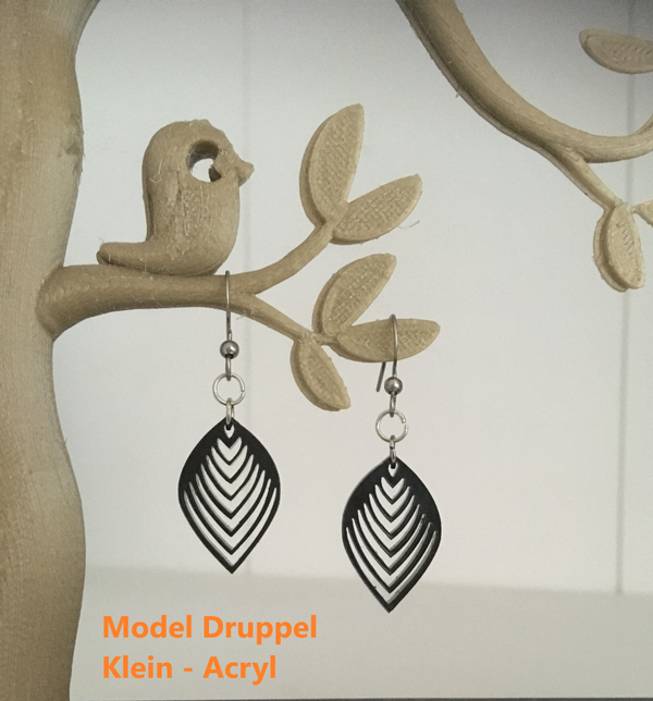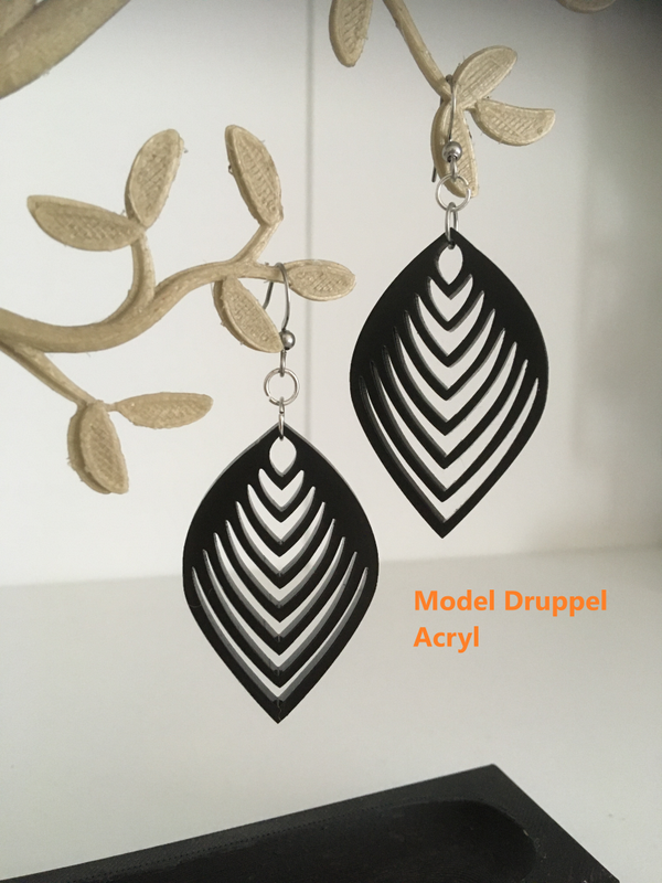 Oorbel uit volledig zwarte acryl met matte afwerking.